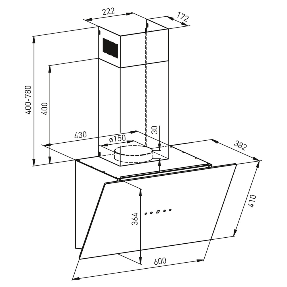 Диаметр выходного отверстия вытяжки, мм 150